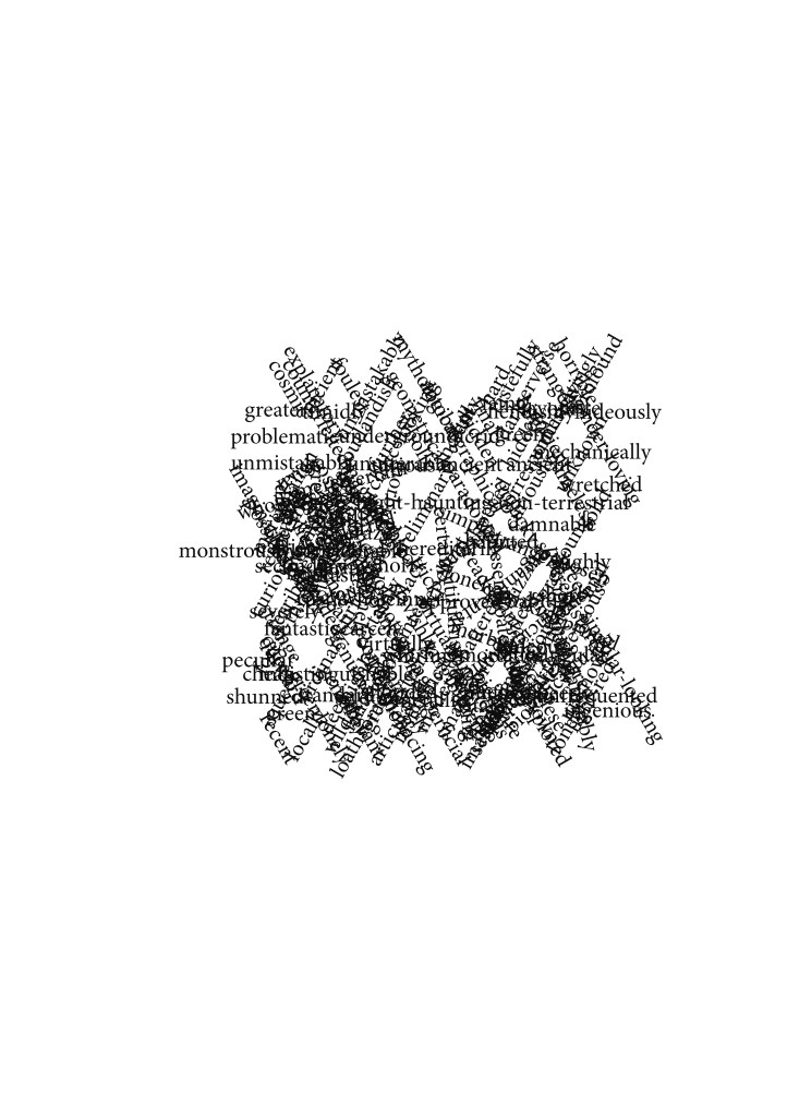Nat1: ‘Prepare to embark on an extraordinary voyage through the enigmatic realm of H.P. Lovecraft’s Arkham in this innovative chapbook. Crafted through a unique blend of artistic expression and technology, this daring work introduces readers to a captivating fusion of maps—concrete poems created by Lovecraft’s texts—and fragments of original poetry.